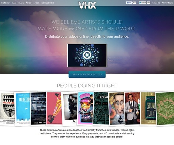 VHX est un peu un intrus dans cette sélection dans la mesure où son site Internet n'est pas vraiment une plateforme VOD. Par contre, ils permettent à des producteurs/réalisateurs de mettre en vente leurs films directement sur la toile sans restrictions géographiques (sauf dans de rares cas comme pour "All the boys love Mandy Lane" dernièrement ajouté - et qui n'est pas du tout un film romantique). Un exemple avec "Upstream color", présenté il y a quelques jours au festival de Deauville et déjà en vente sur le site officiel du film via VHX pour 20$. J'ai déjà utilisé la plateforme pour acheter des documentaires sur les jeux vidéo indépendants ou sur la création de Minecraft (pas des films romantiques donc) et ça marche super bien, avec liens de téléchargement des films etc. Ce sont des films/documentaires qui n'ont rien d'amateurs et c'est ce que privilégie VHX. Par contre, leur site est assez mal foutu et pour voir les nouveautés, il vaut mieux suivre leur blog officiel.