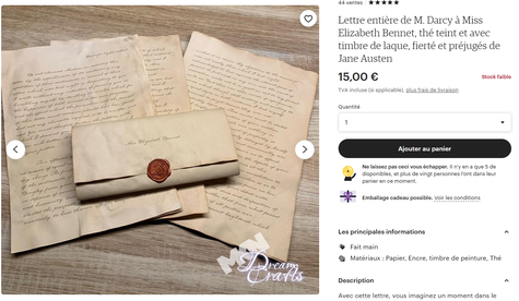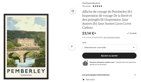 Etsy est vraiment le repaire de passionnés qui n'hésitent pas à vendre tout et rien autour de certains films et celui-ci n'y échappe pas avec des propositions d'objets faits mains qui feront très bien chez vous. N'en parlez pas à l'élu(e) de votre coeur, décorez simplement votre maison comme Pemberley, vous le méritez.
