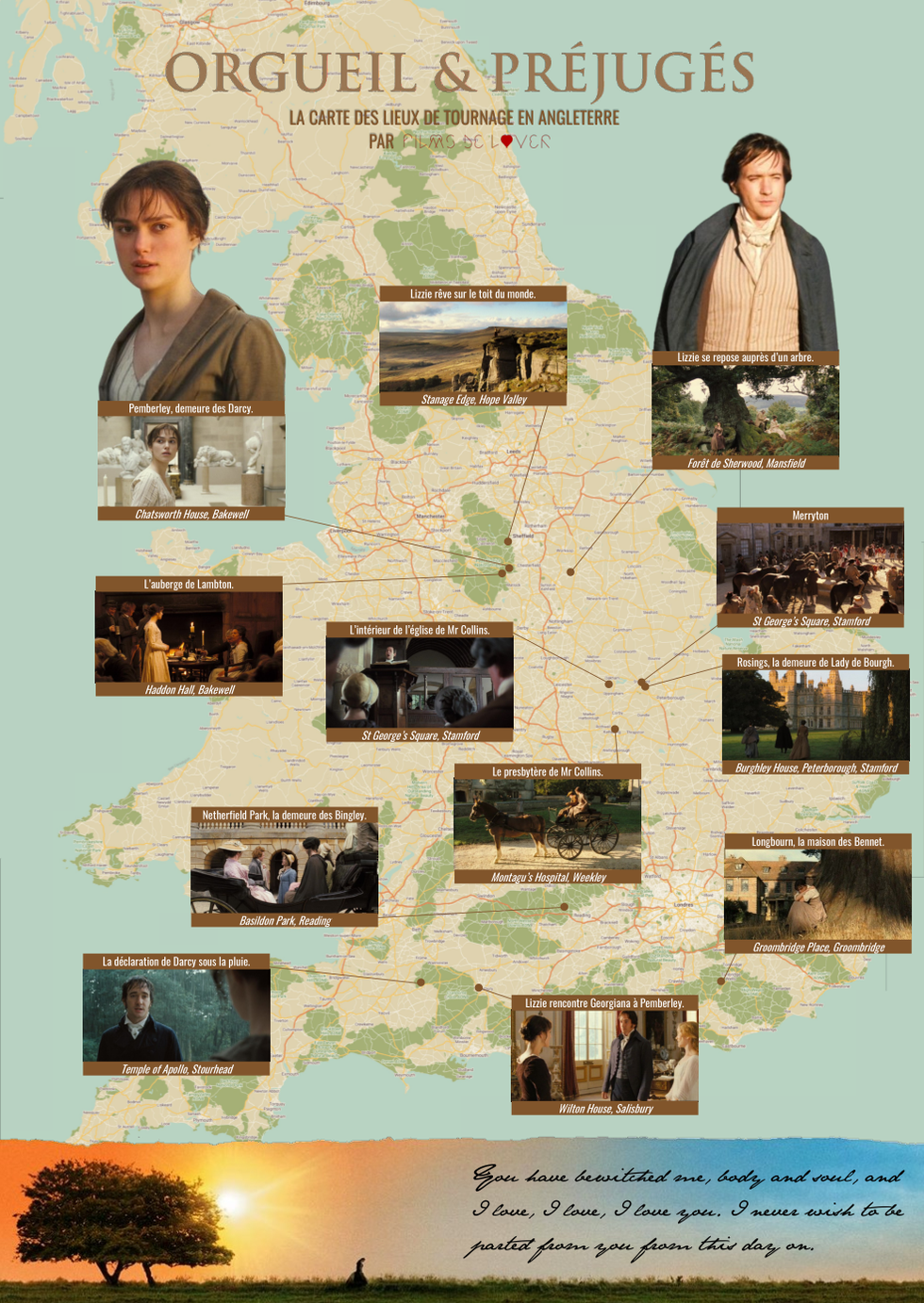 Notre carte des lieux de tournage de "Orgueil et préjugés" au Royaume-Uni.