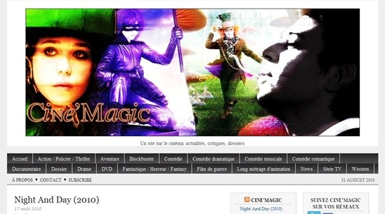 "Cine'Magic" est un blog de cinéma, comme son nom l'indique, qui parle des sorties ciné mais laisse aussi une place importante aux Top listes dont nous sommes particulièrement friands, surtout quand il s'agit du Top 5 des meilleurs baisers au cinéma.