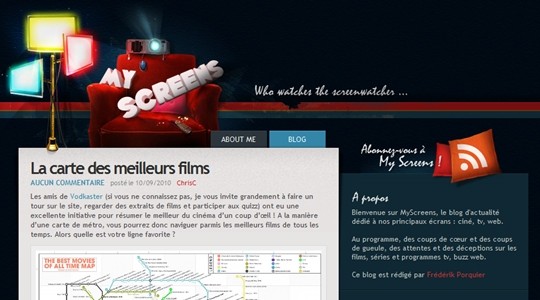 MyScreens est un blog d'actualité dédié au ciné, à la télé et au web. On y retrouve les coups de coeur et les coups de gueule de Frédérik, son auteur.