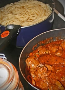 j'adore cette recette cookine "spaghetis bella notte. merci.