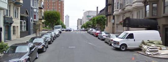 Alors là, on ne peut pas faire plus ressemblant. Cette maison à l'angle de Mason et Green est celle qui a été utilisée pour les plans extérieurs de l'appartement du personnage de Reese Witherspoon dans "Et si c'était vrai". Elle possède d'ailleurs une vue sur toute la baie de San Francisco. Les intérieurs ont été tournés en studio il me semble donc il est peu probable que le vrai intérieur ressemble à celui vu dans le film. Mais si vous passez dans le coin, rien ne vous empêche de demander aux locataires.