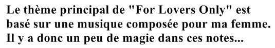 A noter que la bande-originale de "For lovers only" devrait être bientôt disponible sur iTunes.