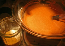Faire parallèlement de même avec le beurre et mélanger dans un seul et même saladier. Le couple glamour est prêt.