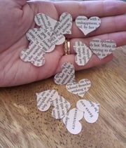 En voilà une idée qu'elle est bonne non ? Prendre le livre de base, en faire des confettis à utiliser lors d'occasions joyeuses, comme un mariage etc. On pourra toujours dire que c'est mal de détruire des bouquins, mais c'est en tous cas très original et poétique d'une certaine façon.