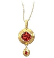 Point d'article comme celui-ci sans sa reproduction de bijou. C'est du plaqué or avec un peu d'argent pour la chaine et des pierres taillées de 8 carats pour les deux parties couleur rouge rubis. Pourquoi pas.