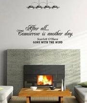 Tiens, un peu de déco avec cet autocollant mural qui reprend l'une des répliques de Scarlett : "Après tout, demain est un autre jour". Pas sûr que ça rende aussi bien sur vos murs que sur ceux de la photo mais au moins, votre amour du film sera public.