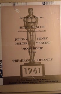 En cas de victoire d'Oscar, l'usage veut que la boite de distribution se fende d'un petit message de félicitations dans les journaux dédiés au cinéma ou les quotidiens dans les jours qui suivent. C'est donc ce que propose ce vendeur, à savoir une pub de Paramount à destination des compositeurs de la musique du film, et notamment du génialissime "Moon River". C'est une vraie apparemment.