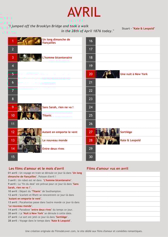 Cadeau : téléchargez le calendrier perpétuel complet de Films de Lover !