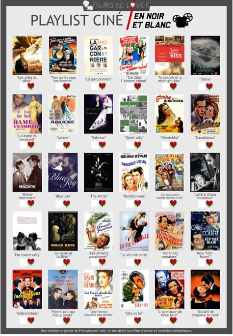 Si vous considérez que les couleurs, c'est surfait, cette playlist est faite pour vous puisqu'elle vous propose 30 films d'amour filmés en teintes de gris de diverses époques.