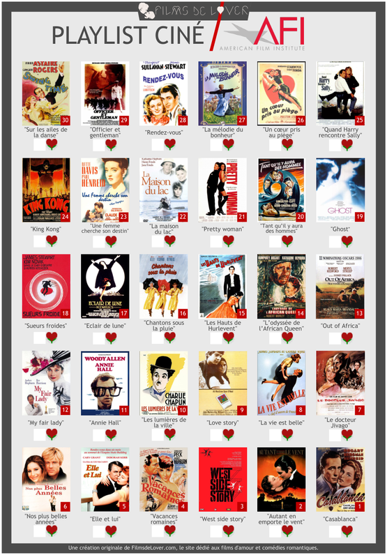 La playlist du jour nous vient de l'American Film Institute, une institution outre-Atlantique visant la préservation du cinéma américain. Voici donc selon eux les 30 meilleurs films d'amour américains.