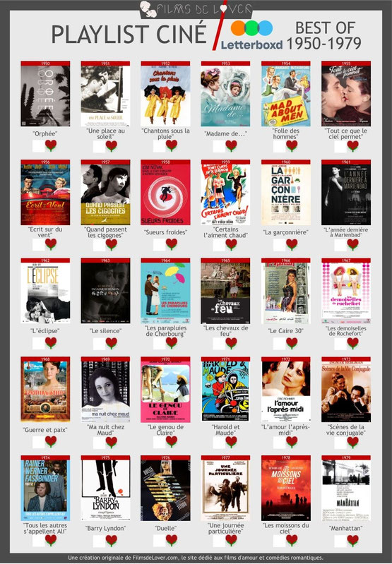 La playlist du jour nous vient des utilisateurs du réseau social de cinéma Letterboxd qui nous a permis de définir le meilleur film romantique par an, entre 1950 et 1979. Cette liste fait suite à celle publiée le mois dernier concernant les meilleurs films d'amour de 1920 à 1949 et nous publierons la playlist "1980-2009" le mois prochain. Voilà de quoi partir des bases et de voir l'évolution du genre au fil des ans.