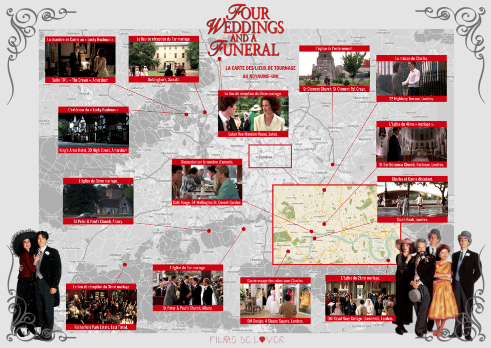 Téléchargez notre carte des lieux de tournage de "4 mariages et 1 enterrement".