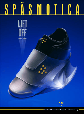 Dans le film, Drew est le concepteur d'une chaussure ratée qui va faire perdre beaucoup (beaucoup) d'argent à sa boite, la Späsmotica. Regardez comme elle est belle, avec ses ailerons de requin sur les côtés. Je ne sais pas si c'est très pratique à porter ceci dit et je peux comprendre aussi pourquoi personne n'en veut dans le monde fictif du film (même si dans une scène finale coupée, elle serait à priori devenue culte). Sache qu'ici en tous cas, on t'apprécie petite chaussure.