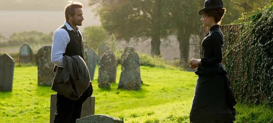 "Loin de la foule déchainée" raconte en gros les atermoiements amoureux d'une jeune femme face à trois aspirants qui la convoitent : le rude mais doux Gabriel, le vieillissant mais riche Boldwood et le fringant sergent Troy. Bathsheba apparait au début du film comme une femme libre et indépendante qui ne compte pas se laisser dicter son avenir sentimental par la société anglaise mais à un moment, elle semble changer complètement de conduite pour les beaux yeux de Troy. Et à partir de là, le film part un peu en cacahouètes selon moi. Tout d'abord, je n'ai rien contre Tom Sturridge mais il ne fait pas le poids en Sergent Troy, surtout à côté des excellents Mulligan, Sheen (très émouvant en homme vieillissant) et Schoenaerts. Sa moustache ridicule ne l'aide pas non plus vraiment il faut dire. Plus grave, le retournement total du caractère de Bathsheba face aux avances de Troy (pour ne pas dire semi-viol) est incompréhensible. S'en suivent des péripéties très mal amenées et alambiquées (pêle-mêle, plusieurs morts et résurrections assez peu crédibles) qui amèneront malgré tout à une fin de très haute volée qui parvient à rattraper le coup juste avant la fin du film. Mais c'est dommage que le troisième acte soit aussi raté surtout quand on le compare aux deux premiers qui installaient une atmosphère de film romantique victorien tout ce qu'il y a de réussi.