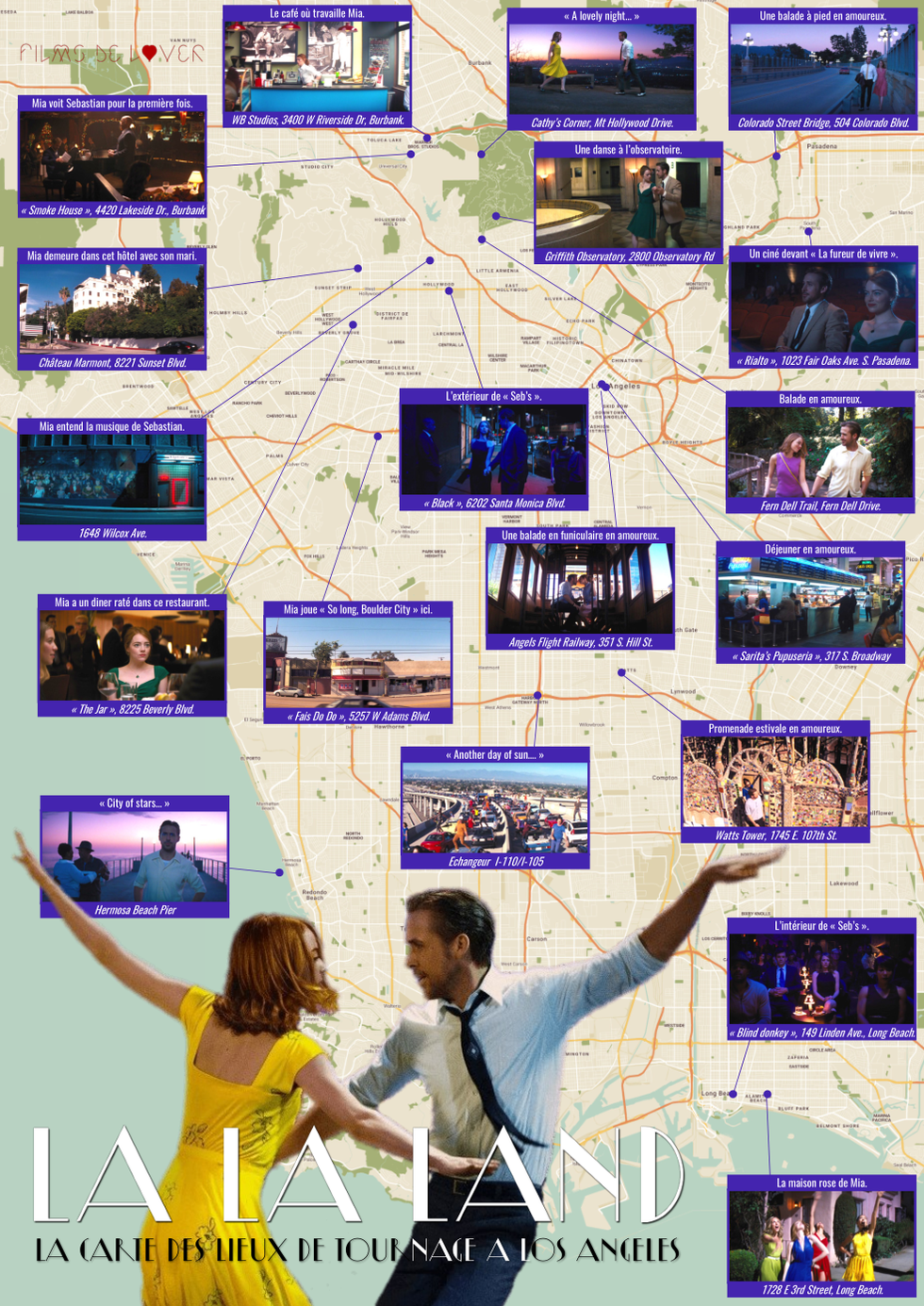 Téléchargez notre carte des lieux de tournage de "La La Land" à Los Angeles.