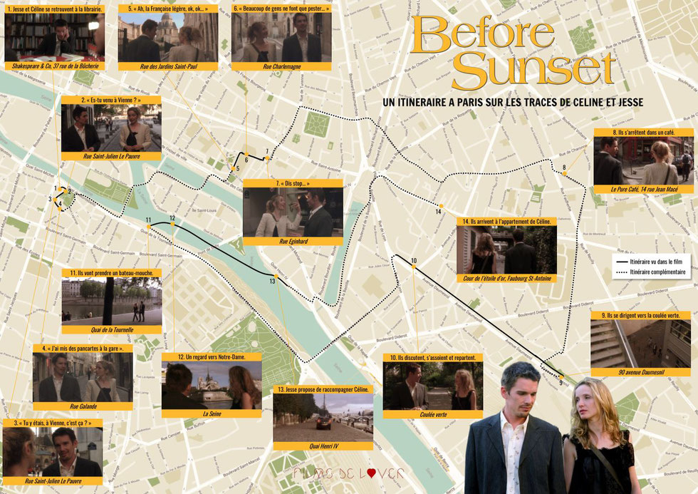 Téléchargez notre itinéraire "Before Sunset" sur les traces de Céline et Jesse à Paris.